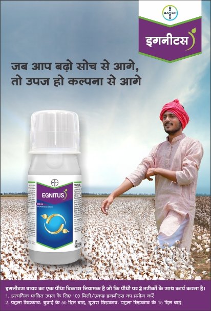Bayer Egnitus is an effective Plant Growth Promoter (PGP) containing Cyclanilide 2.10% + Mepiquat Chloride 8.40% SC. This Bayer plant growth promoter is the ultimate solution to achieve higher yields with improved fruit quality. The product is used on crops like cotton to enhance growth management. Plant stimulants unlock healthy harvest with controlled growth.